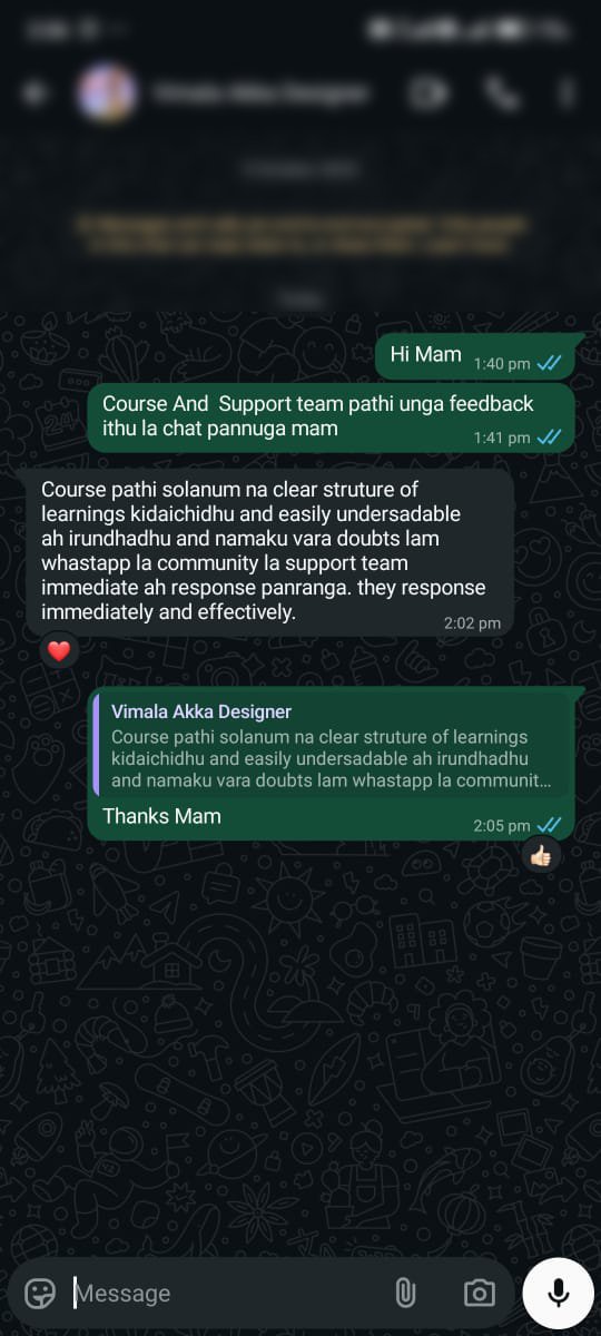 Access to our Private WhatsApp Community Connect with other learners, get support & share your designs